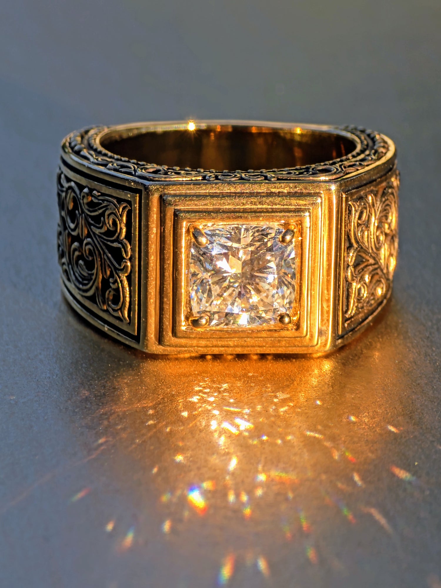 "I was tired of seeing uninspired, overpriced wedding bands for men. Nika custom-made the design I loved. The Legacy Band, inspired by our love story, is more than a ring—it’s a symbol of my devotion to Nika, one I’ll wear forever.