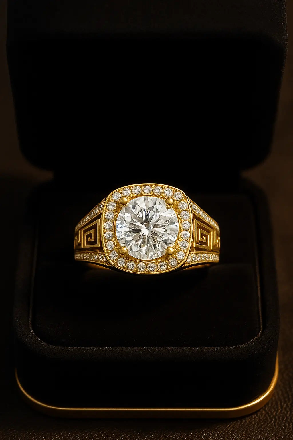 Inspired by the Greek meander, symbol of infinity and heritage, this bold creation transforms ancient power into a modern heirloom.
